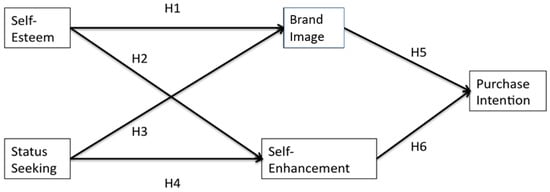 Past research has shown that a strong positive brand image increases consumers’ willingness to pay (WTP) and purchase intention [66,67,68]. Brown and Dacin [5] found that higher brand equity leads to higher purchase intention because it is highly evaluated by consumers who trust CSR brands. In addition, a firm’s good reputation via CSR activities can increase customers’ loyalty toward the brand, which may increase their purchase intention [8]. The consumer characteristics of self-esteem and status-seeking lead to higher brand image, which in turn leads to higher purchase intention, meaning that brand image is a mediator between self-esteem, status, and purchase intention. As a result, we expect that the brand image attributed to the CSR products will positively relate to the consumers’ purchase intention, as it mediates the relationship between self-esteem, status-seeking, and purchase intention in that a higher brand image will result in an increased intention to purchase the CSR product.