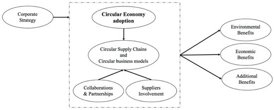Sustainable economic systems and circular business models are attracting the attention of both researchers and practitioners. Companies are progressively integrating sustainability into their corporate goals and are actively engaging with their stakeholders on corporate social responsibility (CSR) targets []. In this context, as highlighted in Ref. [], CE represents a real opportunity to integrate sustainability into the company’s vision and reconcile CSR goals. This paper seeks to find how CE, besides sustainability, can also exert a real business opportunity for companies and a tool to integrate within the Supply Chain (SC) network. In fact, the CE paradigm needs the firms’ boundaries be extended to supply chains partners that have the same orientation towards circularity. Among the extant literature, Ref. [] have conceptualized a unifying definition of circular supply chain (CSC) management. The latter consists of a set of green strategies and CE practices enabling the continuous circulation of value and resources, collaborations with both upstream/downstream partners as well as industrial partners []. CSCs are sustainable enablers that currently require more investigation []. In fact, firms still need to identify the path for developing CSCs []. Accordingly, this research aims at investigating the current CE practices available to successfully implement CSCs.