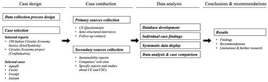 As suggested by Ref. [], multiple sources of evidence have been used to ensure and construct the study validity. The triangulation of the questionnaire and interviews outcome has been performed with the secondary data sources. Initially, the information collected was structured in a database to enable an overall overview of the Italian CE scenario. Then, the information gathered from the questionnaire and the interviews was integrated with the data from the companies’ reports and websites and organized into four individual case files. In view of the conclusion drawing, data reduction and display were implemented selecting only the most significant content and organizing it in a matrix format. In addition, the displayed data supported comparative analysis and conclusions.