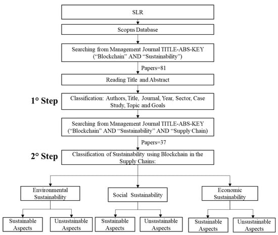 The methodology used to analyze the dynamics of sustainability in the blockchain world, and subsequently in supply chains, is the SLR. This is a well-established method that guarantees the verifiability and traceability of the procedure by the reviewers []. The research was conducted from 2008, the year in which blockchain exploded, until 2020. The Scopus database, containing the major international journals, is used to standardize the research. In addition, management journals have been selected to focus attention on the managerial and engineering side.