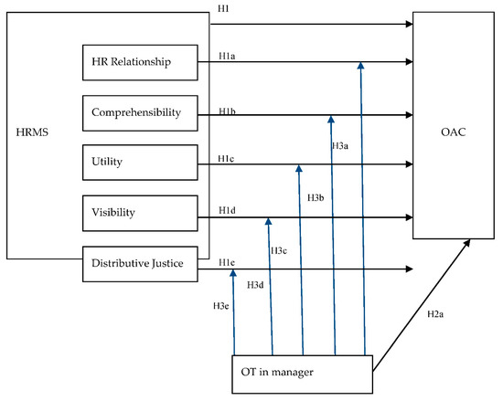 Model 2, the mediator model, predicted that HRMS dimensions influence OT in manager, which, in turn, influences OAC (see in Figure 2)