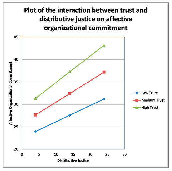 In order to test the moderation effects, we performed a hierarchical linear regression. We used the method enter and the IV’S were entered cumulatively in a prespecified sequence [54] As this research followed a PCA described above, the IV’s were the factors that resulted from this PCA. Considering specifically the analysis of moderation with regression equations containing higher order terms, no automatic search procedures are indicated [63,64]. The moderation model has three steps. In the first step, the control variables were entered into the model. In the second step the main effects were entered. Interactions entered in the third step. The control variables that weren’t continuous were transformed into categorical with two categories: Public sector = 0, Private = 1; Industry = 0, Services = 1; No term contract, Fixed term contract = 1. In the second step the main effects were entered in the order indicated above. In the final step, the interactions factors were calculated (Trust x HR Relationship with employees, Trust x Comprehensibility, Trust x Utility, Trust x Visibility and Trust x Distributive Justice) and entered [54]. In our analysis both the moderator variable and the independent variable are continuous. In this case “If one presumes that the effect of the independent variable (X) on the dependent variable (Y) varies linearly or quadratically with respect to the moderator (Z), the product variable approach should be used [66]. Non-essential multicollinearity is a typical problem in interactions analysis. We chose to follow what is considered a good practice in recent research, the main effects were centered before producing the interactions [63,64,65,69]. When both predictors are quantitative, as in this case, the interactions must be produced with the initial predictors transformed in centered variables [63,69,70] Pos-hoc analyses were performed and are detailed in the results section.