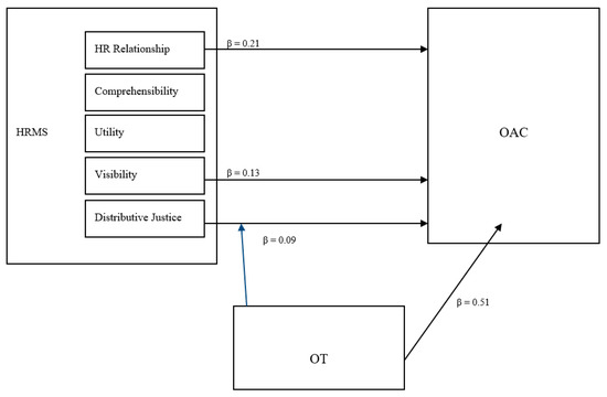 Model 1, the moderator model, predicted that the HRMS dimensions would interact with OT in order to modify OAC. (see in Figure 1)