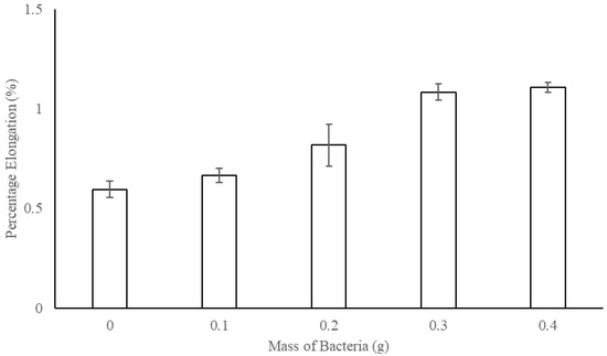 The effect of the mass of bacteria reinforcing filler on the percentage elongation of the composite films.