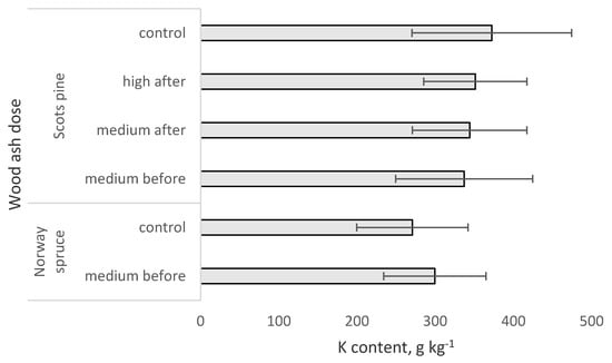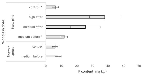 - Moilanen, M.; Silfverberg, K.; Hakka, H.; Issakainen, J. Wood ash as a fertilizer on drained mires–growth and foliar nutrients of Scots pine. Can. J. For. Res. 2005, 35, 2734–2742. [Google Scholar] [CrossRef]