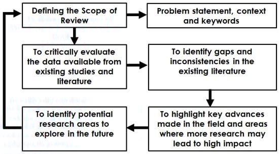 As shown in Figure 2, the methodology of the study starts with defining the scope of the review for building applications along with the problem statement with the context critical review of the existing studies and literature performed for 15 years (2005–2020). After understanding the literature, gaps and inconsistencies are figured out. Then, key advances in the field are highlighted, which may lead to high impact by reviewing recent papers of 2019 and 2020. Lastly, potential research areas to be explored for the future are highlighted.