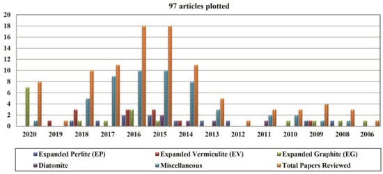 Among numerous inorganic porous materials, EV, EP, diatomite, and EG possess the characteristics of high porosity, large surface area, and moderate pore diameter (0.1 micron–100 micron). Moreover, these four supporting materials have the benefits of low price and wide sources, hence are ideal supporting medium to prepare SSPCMs [44,45]. The properties of the EV, EP, EG, and diatomite, why these are important and used in buildings is discussed herein.