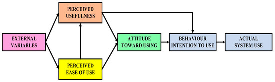 - Davis, F.D.; Bagozzi, R.P.; Warshaw, P.R. User acceptance of computer technology: A comparison of two theoretical models. Manag. Sci. 1989, 35, 982–1003. [Google Scholar] [CrossRef]