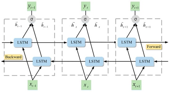 where represents LSTM function, and are the weight of forward LSTM and the weight of backward LSTM, respectively and the bias of the output layer is represented by .The network structure of BI-LSTM is shown in Figure 3