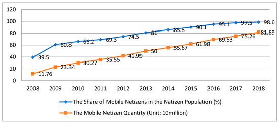 Mobile netizen quantity and share of mobile netizens in the netizen population.
