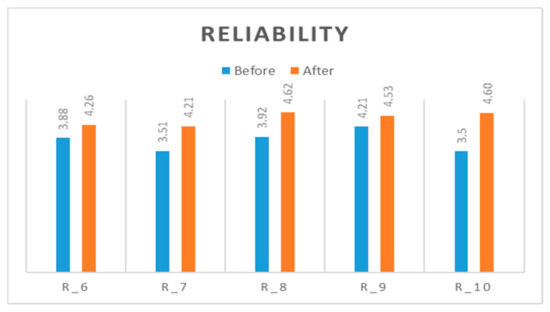 | Reliability | 3.81 | 1.08 | 4.44 | 1.60 | 0.63 | 3.67 | p < 0.01 |