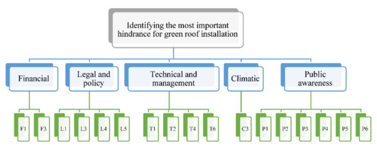 In this research, an extensive body of literature is reviewed regarding the reported hindrances to GR installation in the studies conducted in different climates and regions, either in developed or developing countries. In this research, these hindrances are identified and categorized into several groups. It is notable to mention that the categories are chosen based on the studies that focused on the barriers to—and root causes of the deficiency of GR installation around the world (e.g., Williams et al. [31], Zhang et al. [30], and Chen et al. [24], Mahdiyar et al. [28]), while the individual hindrances are gathered from various types of research on GRs. These hindrances are used as the input for FDM, which is explained in the next section.