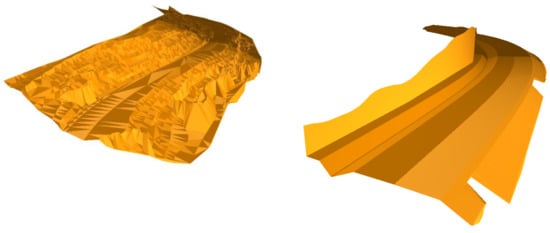 The first aspect to be considered is the cartographic format. As shown in Section 3.1, terrain modelling can be carried out in two ways: by the combination of data points into nets (triangulated irregular nets—TINs) or by a regular mesh or grid [21]. TINs provide a better representation of the geometry of the terrain by modifying the density of the network of triangles according to the changes in the surface [22]. The use of a grid for the representation of a medium or large size (>1 km) terrain model is not appropriate for the design of linear works since it generates poor definition in areas with abrupt changes of relief [23] or it requires a very small mesh size, which implies large files that make it difficult to handle.