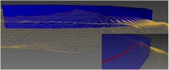 De Wulf et al. [24], researched the suitability of each of the cartographic formats. They conclude that for terrain with very irregular geometry, the use of a TIN is recommended due to its greater capacity to adapt to the terrain. Bearing in mind that the methodology presented here should be capable of adapting to any type of terrain and furthermore that the platform of linear works incorporates singular elements such as ditches which are characterized by having high slopes, the TIN method is considered to be the most appropriate option.