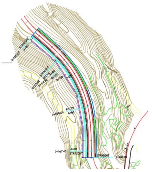 - Hirpa, D.; Hare, W.; Lucet, Y.; Pushak, Y.; Tesfamariam, S. A bi-objective optimization framework for three-dimensional road alignment design. Transp. Res. Part C Emerg. Technol. 2016, 65, 61–78. [Google Scholar] [CrossRef]
