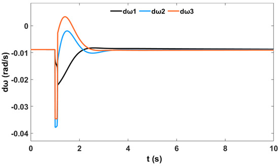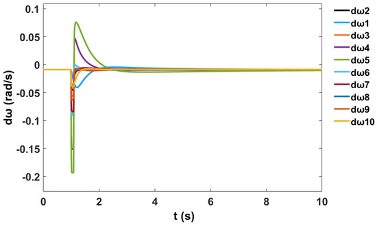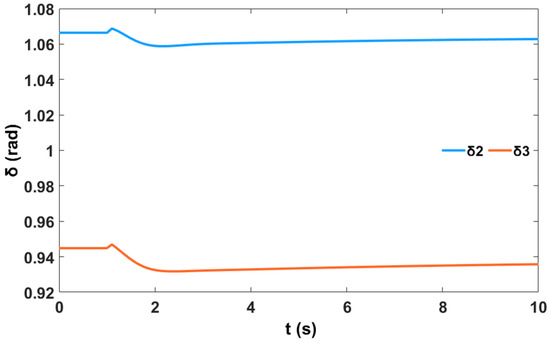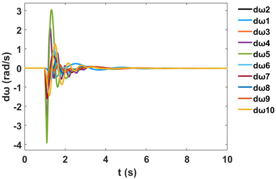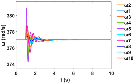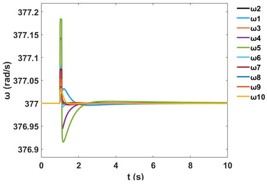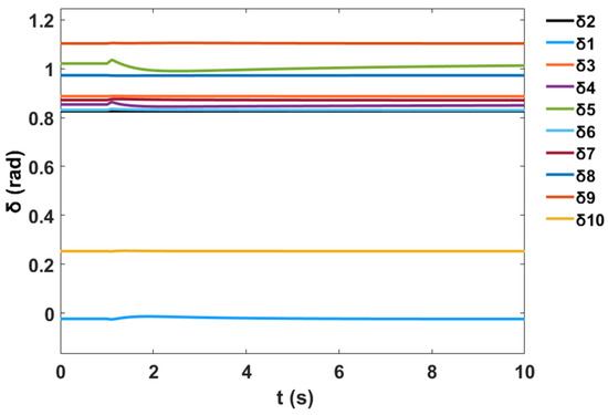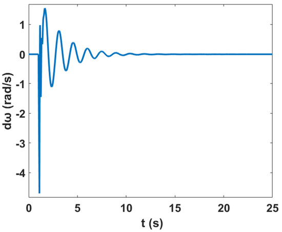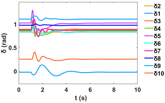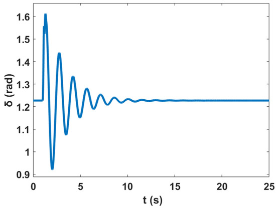 Moreover, a nonlinear time-domain simulation was performed, and Figure 10 shows the stable generator relative power angles δ in radian for the system with PSS, while Figure 11 shows the stable generator speed deviation in radian per second for the system with PSS. Similarly, Figure 12 shows the stable system rotor speed response in radian per second for the system with PSS.