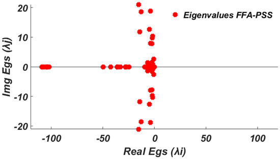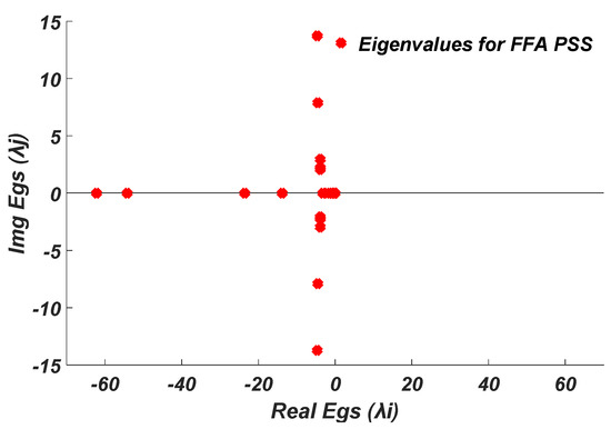 Eigenvalues plot for the system with the FFA-PSS damping controller.