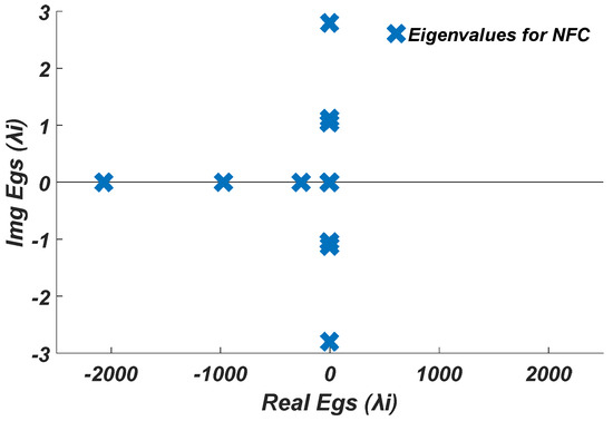 Eigenvalues plot for the system with the NFC damping controller.