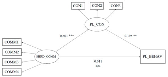 Test for the mediating role of PL_CON on SHRD_COMM. * SHRD_COMM. Notes: n.s. = non-significant; significance at ** p < 0.01, and *** p < 0.001.