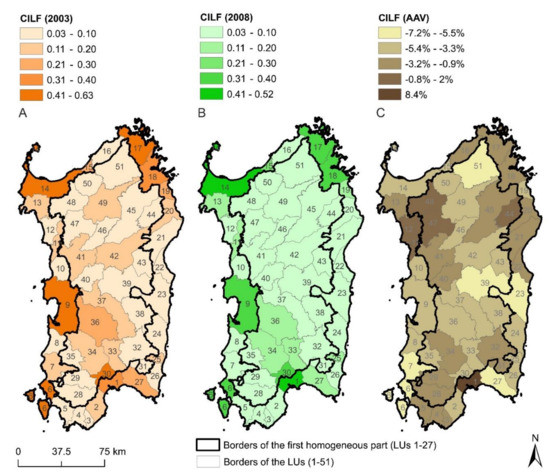 The assessment and management of landscape fragmentation (LF), i.e., the subdivision of the habitat into smaller and more isolated patches, can benefit from the adoption of a composite indicator explaining, in a unique measure, the various concerns involved. However, the use of composite indicators may be affected by lack of data, subjectivity in algorithm design, and oversimplification connected to reduction to just one index. In these cases, the findings obtained might not provide the researcher with reliable information. In this paper, we design and apply the Composite Indicator of Landscape Fragmentation (CILF), a metric resuming three indicators concerning the effect on LF of transport and mobility infrastructures, human settlements, and patch density per se. The application concerns the measurement of LF spatial pattern and dynamics from 2003 to 2008 of 51 landscape units in the island of Sardinia (Italy). We considered a complete spatial data set, chose the generalized geometric mean as aggregation algorithm, and verified its robustness via sensitivity analysis of the results. We found that, in 2003 and 2008, the CILF spatial pattern shows higher values in coastal areas and has varied randomly, i.e., without a consistent tendency to converge to, or diverge from, a mean value. Overall, we demonstrate that the CILF is a powerful instrument for monitoring LF in Sardinia and advocate that it can be further implemented, following the same methodological framework, by extending the pool of indicators considered and assessing a weighted version of the composite indicator.