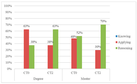 - Cognitive domains are understood as student thinking skills, which include aspects based on general processes such as working memory, attention, or language [47]. According to cognitive domains, mathematics tasks can be classified on three levels [48]: knowing, applying, and reasoning. Knowing tasks imply the evocation and repetition of knowledge that has already been taught. Applying tasks requires the integration and relationship of diverse mathematics knowledge, based on knowing and framed in non-routine situations related to familiar settings. Finally, reasoning tasks entail complex situations that, based on applying, demand reasoning and reflection to achieve the solution.Several authors have analyzed the cognitive domain involved in the mathematics tasks of secondary school textbooks, with a special focus on plane geometry [44] and linear equation tasks [45]. Such analyses have revealed that textbooks encompass mostly mathematics tasks involving routine activities related to the knowing or applying domain. Likewise, [46] showed that most tasks that appear in primary mathematics textbooks only aim to evoke knowledge. Similarly, in an analysis of tasks proposed by primary teachers, [49] found that about 81% and 19% of the mathematics tasks related to the knowing and applying domains, respectively.