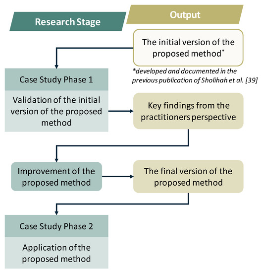 The case study involved a Japanese office machinery manufacturer (Company A). Company A was selected according to three criteria. (1) It is a multinational machinery manufacturer; (2) It currently undertakes servitization and intends to improve its servitization progress; (3) It is willing to provide access to people/processes, share information, and provide constructive feedback during the case study application. In detail, the case study was performed in two phases. Figure 1 illustrates the sequential stages of the research method.