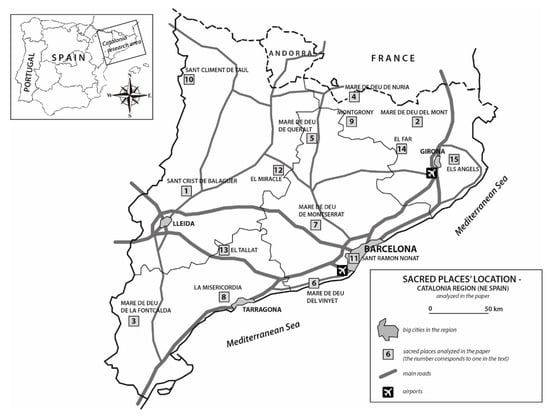 Location of the sacred places in Catalonia (NE Spain) analyzed and described in the paper. Source: The authors.