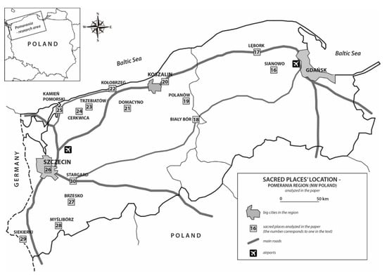 Location of the sacred places in Pomerania (NW Poland) analyzed and described in the paper. Source: The authors.