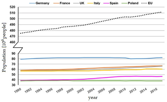 Therefore, we have considered the overall data of the European Union and the six more populated European countries in 2017 [68]: