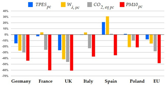 where is the total primary energy supply per capita, which is calculated as the amount of energy, [toe], available for a country, divided by the considered country population (). This indicator provides the total amount of primary energy that a country has at their disposal in relation to its gross domestic product;