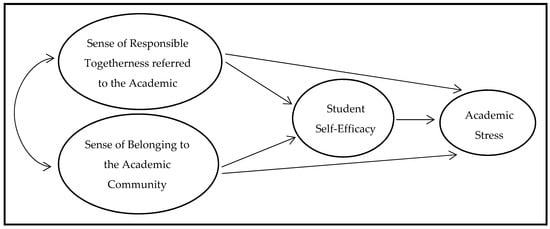 | Sense of Belonging to the Academic Community → Student Self-Efficacy → Academic Stress | −0.30 *** (0.04) | (−0.39, −0.23) |