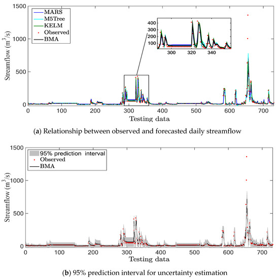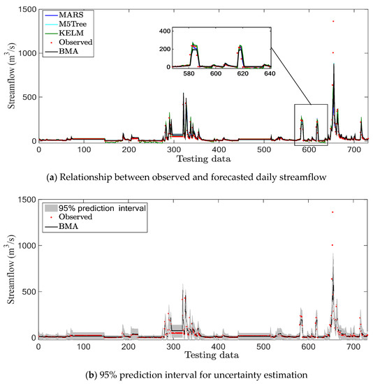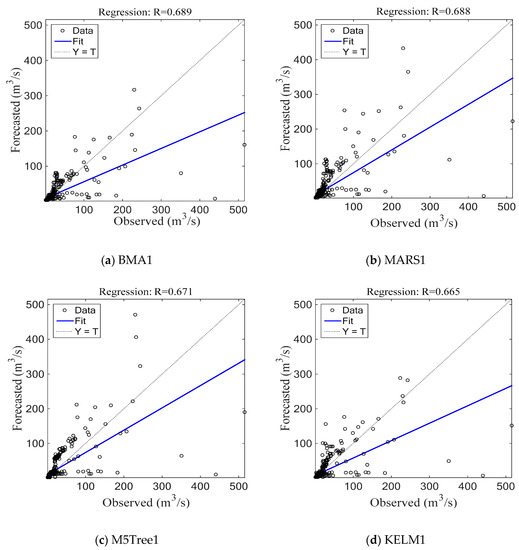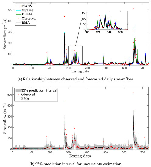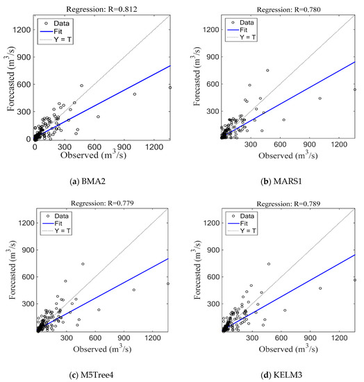 - Yin, Z.; Feng, Q.; Wen, X.; Deo, R.C.; Yang, L.; Si, J.; He, Z. Design and evaluation of SVR, MARS and M5Tree models for 1, 2 and 3-day lead time forecasting of river flow data in a semiarid mountainous catchment. Stoch. Environ. Res. Risk. Assess. 2018, 32, 2457–2476. [Google Scholar] [CrossRef]