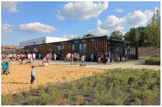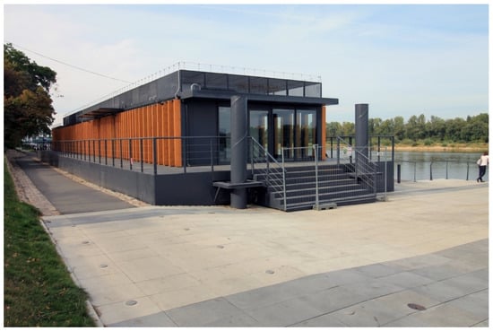 - Kwasiborska, W. Architektura Warszawy. Pawilon Plażowy Nad Wisłą—Mamy Najnowsze Zdjęcia z Placu Budowy. Arch. Murator Plus 2013. Available online: https://archirama.muratorplus.pl/architektura/architektura-warszawy-pawilon-plazowy-nad-wisla-mamy-najnowsze-zdjecia-z-placu-budowy,67_2802.html (accessed on 20 November 2020).