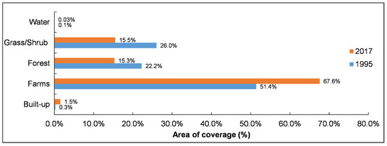 Land use/cover distribution in the years 1995 and 2017 (adapted from Kogo et al. [45]).