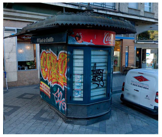 Abandoned newspaper kiosk in the historic district of Valladolid, Spain. Source: Google Maps.