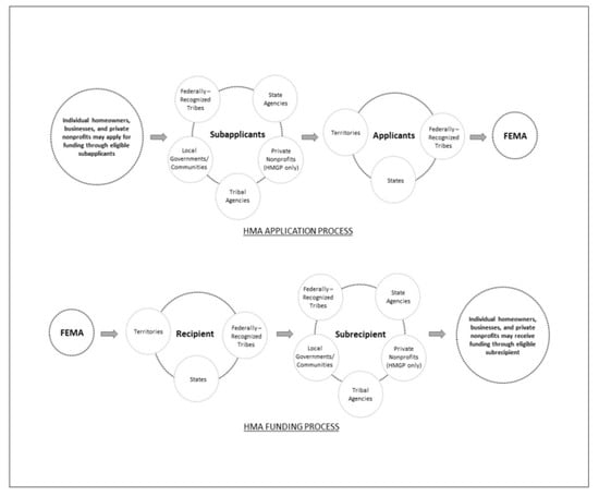Figure 1. Federal Emergency Management Agency (FEMA) Hazard Mitigation Assistance (HMA) application and funding process. Adapted from content found in FEMA’s HMA guidance [9] (p. 81).