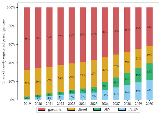 This trend is expected to continue and is anticipated to reach an annual new registration share of 40% in 2030. Since this value is based on an assumption, a sensitivity analysis is performed in Section 4.4.2.