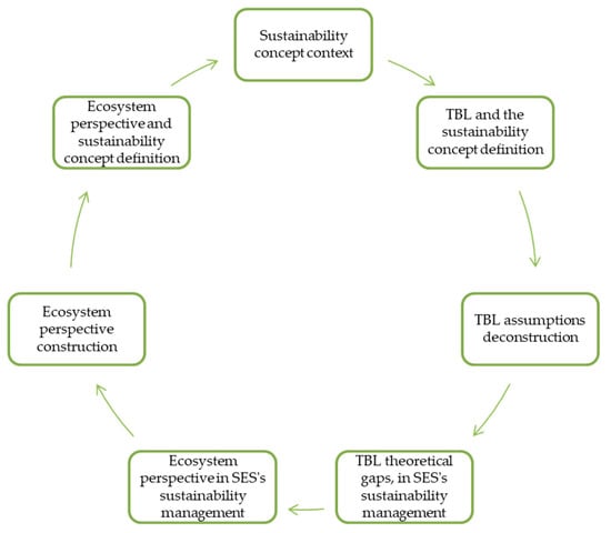 Starting with a problematization of the sustainability concept (Figure 1), the present work investigates the opportunities to conceive a different sustainability model, based on a deeper ecological conceptualization and on a reference concept, the “organization” (from the Chemical Organizations Theory (COT)), as theoretical prototype of a sustainable system. The study was built on the above mentioned problematization methodology. A non-exhaustive literature examination tries to capture some useful perspectives on the sustainability and its connected concepts converging towards a model of ecological inspiration, the “total ecosystem model”.