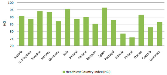 - Bloomberg. 2019 Edition Bloomberg Healthiest Country Index. 2019. Available online: https://www.bloomberg.com/news/articles/2019-02-24/spain-tops-italy-as-world-s-healthiest-nation-while-u-s-slips (accessed on 30 September 2020).