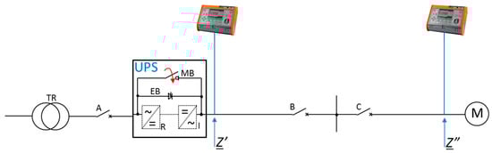 In low voltage installations, there are disturbances in the form of short-circuits and overloads of electric circuits, but the available extensive knowledge allows for appropriate protection of electric circuits in this area [4,5]. Each electrical installation is subject to the procedure of verification during the first start-up, after modifications and periodic inspections in terms of meeting the requirements of the standard [6]. The purpose of verification of electrical installations is to check the conditions of proper protection of people against electric shock and safe operation of the electrical installation and the receivers supplied from it, including circuits fed by UPS.