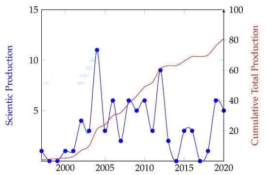 Attending to the evolution in the number of publications by year, the distribution of the 81 publications used in this study can be seen in Figure 6. The first article examining the relationships between JV and sustainability appeared in 1997 []. The volume of articles published did not show a clear growing trend but an average of four documents were published each year, highlighting 2004 with 11 documents and 2012 with nine, showing a slightly upward trend in 2019 that evidences the growing interest and importance of this novel link between JV and sustainability in the scientific community.