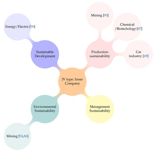 - Inner company: The JV is created by a corporation within itself. This last classification could be subsumed under the previous one, but following the bibliometric analysis, we have decided to mention it separately. An example of this particular JV is explained in Toyota’s internationalization and strategic growth article []. Ichijo described how to transfer knowledge from a Japanese corporation to its subsidiaries. Other examples are: Petronim’s risk assessment process in Trinidad and Tobago [], the DuPont Renewable Sourced Materials subsidiary [], the development and the design by the MacArthur’s River Joint Venture of an ore loading and transportation system [], and how Besicorp Empire Development Co. (BEDCO) created a mill [].