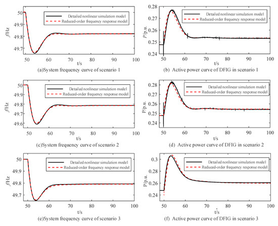 (2) By considering the participation of the DFIG in frequency regulation, the frequency response model of the power system with wind power in the time scales of the inertial response process and the primary modulation is established. The frequency-domain analytical solution of the system frequency is obtained.