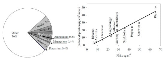 Experimental measured values of PM10 in the air—experimental program UN/ECE ICP [].