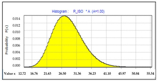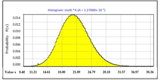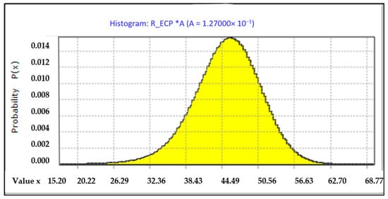 The probabilistic analysis was carried out in the ProbCalc tool using the DOProC method [,]. The source code implementing the prediction models was programmed in Delphi. The source code was then imported into the ProbCalc computational module in the form of a DLL library. This procedure was used primarily in order to handle the different analytical formulas used by the model when the average annual temperature was above or below 10 °C (see Formulas (4)–(6)). Individual random variables were assigned the appropriate probability density distribution obtained via statistical analysis for the values corresponding to the final year in the data series. The characteristics of individual distributions of random variables for climatic parameters are provided in Table 1 (maximum and minimum—limit values of the bounded histogram).