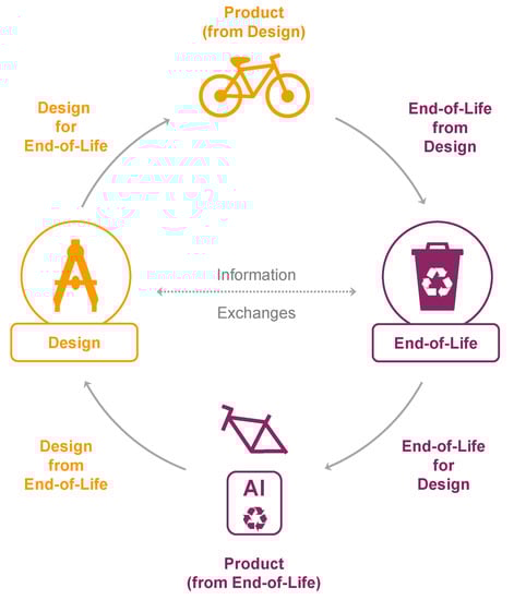 - EoL from design aims to integrate the information accrued from the product design into the operating mode of the chain or its treatment processes to increase the functional, material, and energy recovery;