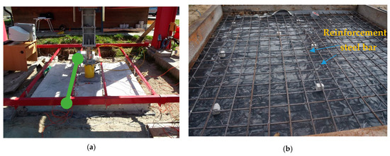 Reinforced concrete slab: (a) view; (b) reinforcements—steel mesh.