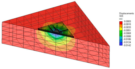 Three-dimensional numerical model—deformation of slab on subsoil: G01, load of 300 kN (half model).