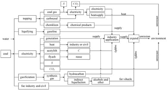 Consequently, SC collaborative evaluation has become an important research focus for SC establishment and optimization [11,12,13,14,15,16,17]. Lambert et al. indicated that successful SC management depended on the focal members of SC, which integrated SC by four components: planning, control methods, workflow, communication and information flow facility structure. The integration and redesign initiatives of SC should be aimed at promoting efficiency and effectiveness of the whole SC and every member of the supply chain [18,19]. Zhang analyzed the influential factor action mechanism in supply chains using self-organization theory, from which SC technology spillover models were established [20]. Kristianto introduced an initial basis for an innovative decision support systems platform which was capable of integrating supply chain system design, management, control and optimization activities [21]. Anbanandam developed a method, which included factors such as management commitment, information sharing, trust between supply chain partners, long-term relationships, as well as risk and reward sharing variables, to measure the collaborative degree between apparel retailers and manufacturers in the retail apparel industry [22]. Zokaee presented a robust optimization model for the design of a supply chain facing uncertainty in demand, supply capacity and major cost data including transportation and shortage cost parameters [23]. Arampantzi propose a new Multi-objective Mixed Integer Linear Programming (MMILP) model, which captures significant decisions involved in designing or redesigning high performance, sustainable supply chains. To solve the proposed model, both goal programming and the e-constraint method to achieve efficient trade-offs among the three objectives are used [24]. However, to date, as most SC research has been business oriented, there have been few energy industry focused studies. In fact, to realize sustainable coal chemical industry development, enterprises need to diversify value and promote industrial chain integration, increasing the complexity of the SC structure [25,26,27]. The coal chemical industry chain is shown in Figure 2.