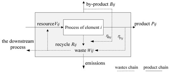 For element i, the industrial metabolic balance for subsupply chain j is expressed in Formula (1):